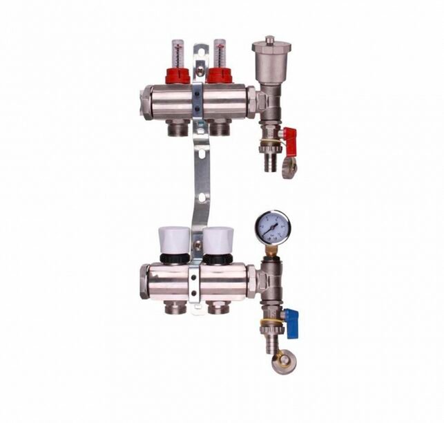 The Bastion Brass Manifold is a durable, versatile distribution unit designed for plumbing, heating, and industrial systems. Made from corrosion-resistant brass, it efficiently manages fluid flow across multiple circuits, making it ideal for underfloor heating, central heating, water distribution, and industrial applications. Its built-in valves provide precise flow control, ensuring even distribution and optimal system performance while preventing pressure drops and uneven heating.